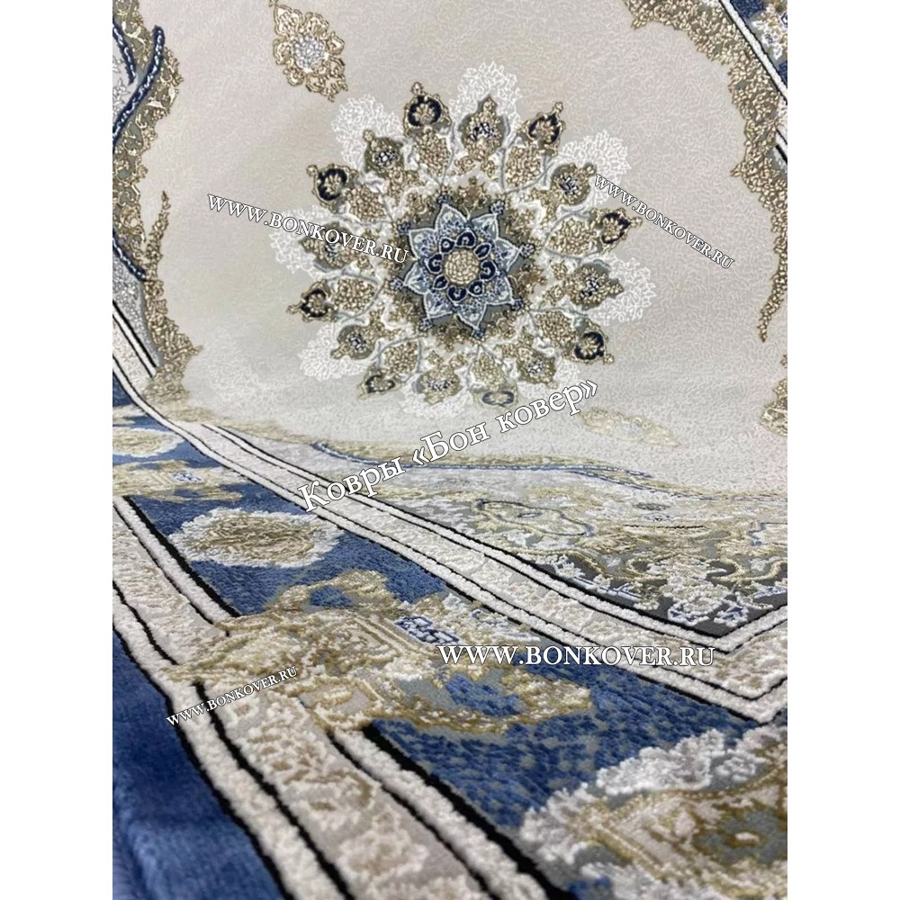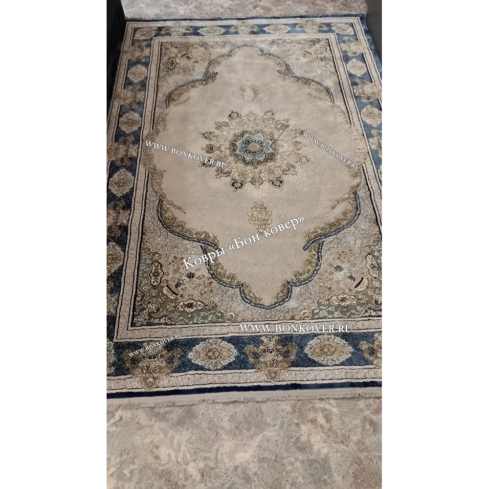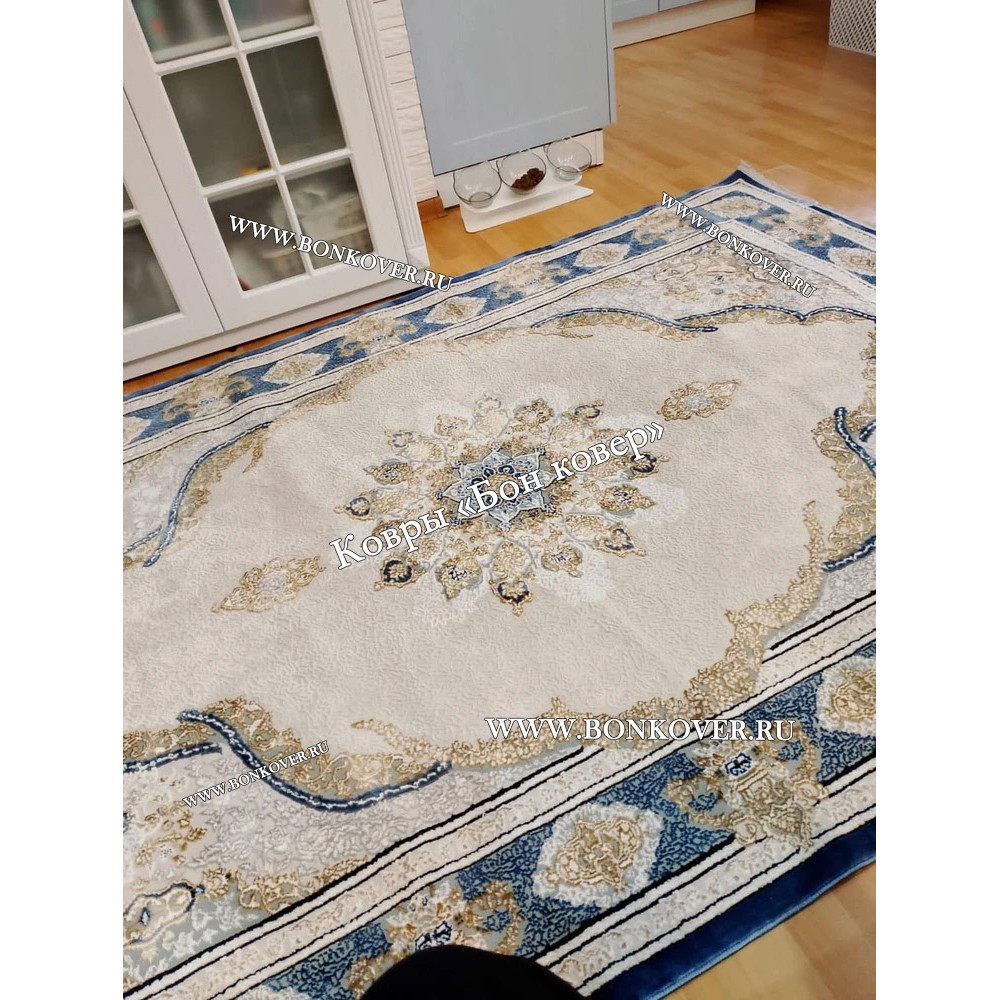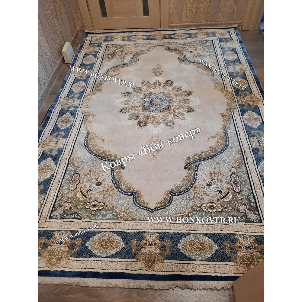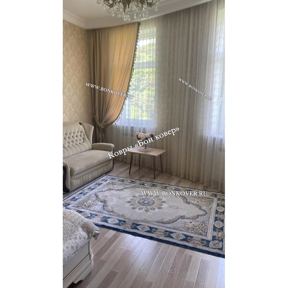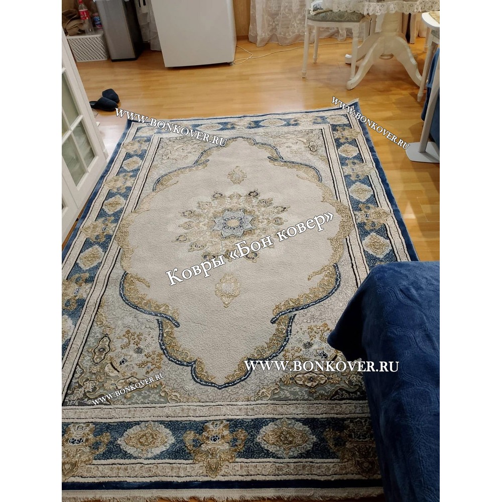 Долго искали смотрели на разных сайтах , в итоге ваш ковер приглянулся больше всего . Доставили в рулоне на следующий день , оплатили при получении . Идеальный вариант , цвет темно синий с переливом - рисунок очень выйгрышно смотрится !
