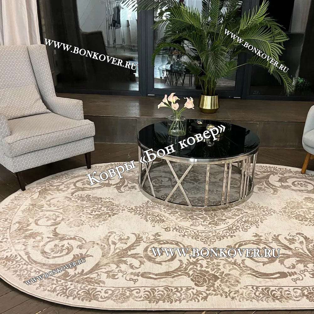 Ковер в гостиную дизайн 12 Коричневый Овал станет идеальным преображением вашей комнаты, подчеркивая высокий статус владельца.