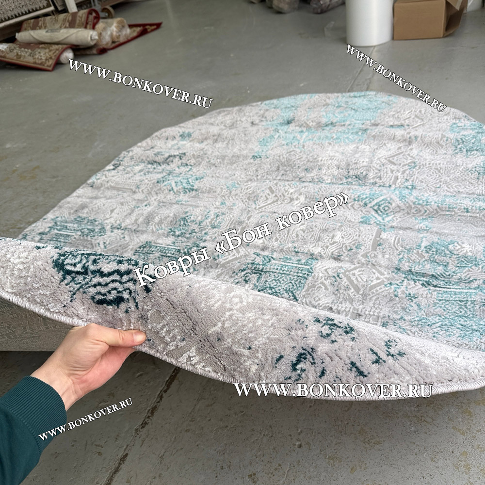 Изящный Современный ковер для комнаты 04 Бирюзовый Овал наполняет интерьер жилого пространства теплом и уютом, гармонично сочетает в себе изящество и стиль. Он создан из высококачественного сырья, прочный и долговечный.