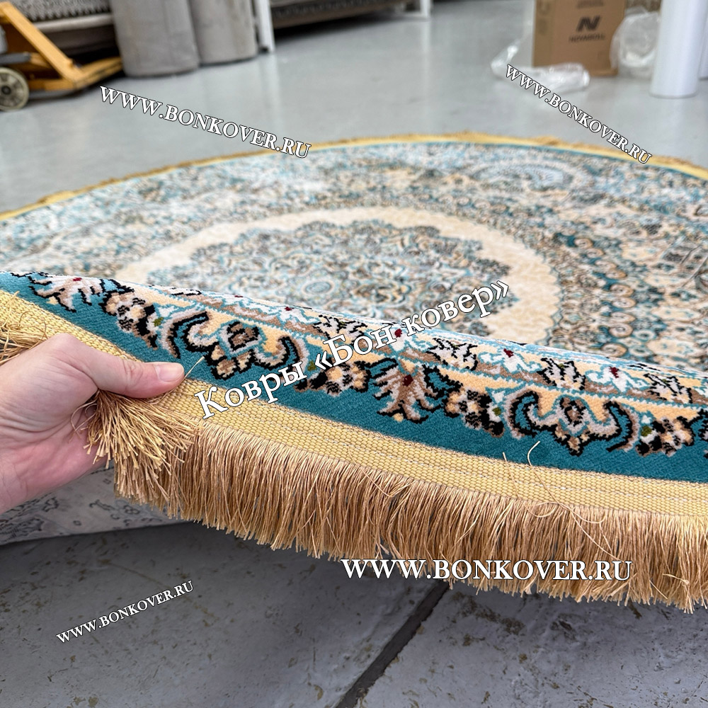 Восточный Ковер Для Гостиной Медальон Дизайн 28747 круг станет привлекательным дополнением интерьера, оформленного в современном или классическом стиле. Мягкое, но прочное, ковровое изделие обеспечивает тепло- и шумоизоляцию, отличается длительным сроком эксплуатации, надежностью, экологичностью и высокой износостойкостью, является отличной защитой от повышенной влажности в помещении и утеплителем для холодного пола. Благодаря качеству материалов, ковер не деформируется, сохраняет форму под тяжестью предметов мебели. За его поверхностью легко ухаживать.